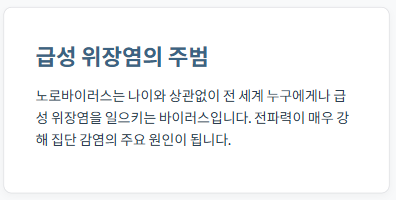 | 노로 바이러스 장염 증상 (0) | 2026.02.06 |