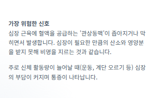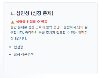 1. 생명을 위협할 수 있는 '심인성' 관점 (협심증, 심근경색 등)