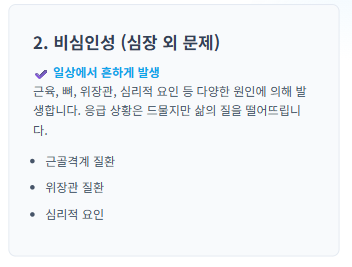 1. 생명을 위협할 수 있는 '심인성' 관점 (협심증, 심근경색 등)