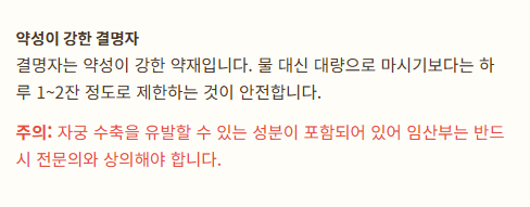 - 만성 설사 환자: 대변이 무른 상태에서 결명자를 마시면 증상이 악화될 수 있습니다.
