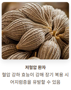 - 임산부: 자궁 수축을 유발할 수 있는 성분이 포함되어 있으므로, 임신 중에는 전문의와 상의 후 소량만 섭취해야 합니다.