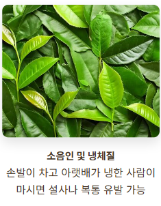 - 소음인 및 냉체질: 평소 손발이 차고 아랫배가 냉한 사람이 많이 마시면 설사나 복통을 유발할 수 있습니다.