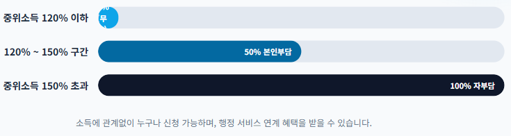 소득에 관계없이 신청은 가능하지만, 본인의 소득 수준에 따라 지원되는 금액 비율이 달라집니다.