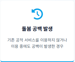 - 기존의 공적 돌봄 서비스(노인장기요양, 장애인활동지원 등)를 이용하지 않거나, 이용 중임에도 불가피한 돌봄 공백이 발생한 경우