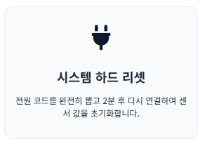 • 조치: 실내 온도 조절기 전원을 끄는 것이 아니라, 보일러실의 220V 전원 코드를 아예 뽑으세요. 1~2분 정도 대기하여 잔류 전하를 모두 방전시킨 후 다시 꽂습니다. 시스템이 초기 상태에서 센서 값을 다시 읽게 됩니다.