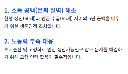 • 핵심 체크: 연금 수급 시기와의 연계 여부 및 임금 체계 개편안 확인