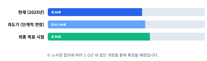• 최종 목표: 2033년경 전면적인 만 65세 정년 도달