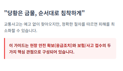 사고 발생 직후, 추가 사고를 막고 인명 피해를 최소화하는 것이 최우선입니다.