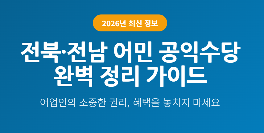 2026년 기준 전북특별자치도와 전라남도의 어민 공익수당 지급 대상 및 주요 조건은 다음과 같습니다. 지역에 따라 신청 기간과 지급액에 차이가 있으니 거주하시는 지역의 상세 내용을 확인하시기 바랍니다.