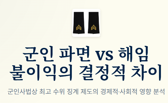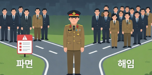 파면과 해임은 모두 '군복을 벗어야 한다'는 점에서는 같지만, 파면은 퇴직금 반토막과 5년의 자격 정지를, 해임은 신분 박탈과 3년의 자격 정지를 의미합니다. 특히 파면은 단순한 해고를 넘어 징벌적 성격이 매우 강한 처분이라 할 수 있습니다.