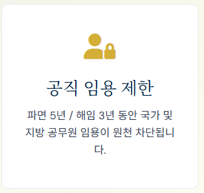 | 재임용 제한 | 5년간 공무원 임용 불가 | 3년간 공무원 임용 불가 |