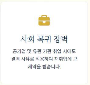 파면은 5년, 해임은 3년 동안 국가공무원이나 지방공무원이 될 수 없습니다. 이는 공기업이나 유관 기관 취업 시에도 결격 사유로 작용하는 경우가 많아 사회 복귀에 큰 걸림돌이 됩니다.