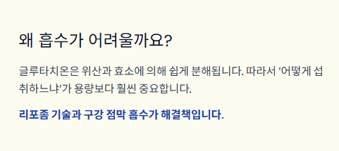 - 리포좀 글루타치온: 글루타치온을 인지질 막으로 감싸 위산으로부터 보호하고 세포 흡수율을 극대화한 형태입니다.