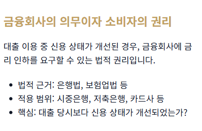 • 핵심 권리: 신용 상태 개선 시 대출 금리를 낮춰달라고 요구할 법적 권리