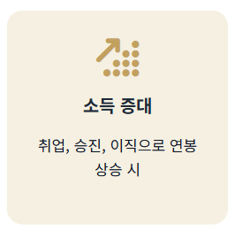 • 소득 및 재산 증가: 취업, 승진, 이직을 통해 연봉이 올랐거나 전문 자격증(의사, 변호사, 회계사 등)을 취득한 경우입니다. 또한 자산이 크게 늘어나거나 부채가 대폭 감소한 경우도 해당합니다.