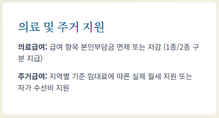 • 지원 기간: 수급 자격 조건이 유지되는 한 제한 없이 계속 지원받을 수 있습니다.