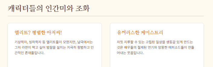 2-2. 캐릭터들의 인간미와 코믹한 조화의 관점