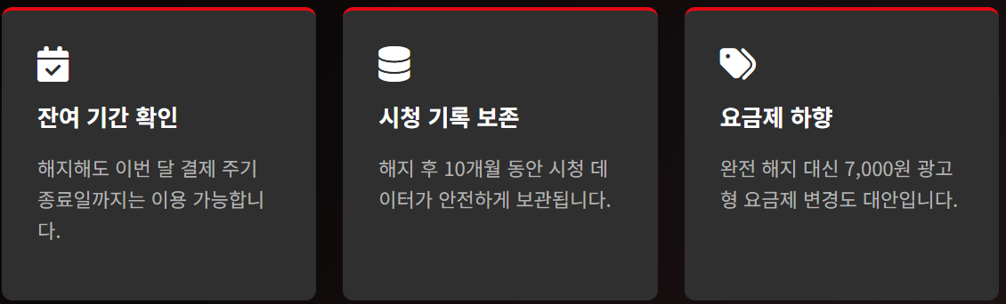 2. 이미 결제된 주기의 마지막 날까지는 추가 요금 없이 계속 시청이 가능합니다.