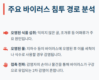 노로바이러스가 무서운 진짜 이유는 적은 양의 바이러스(약 10~100개의 입자)만으로도 감염을 일으키는 강력한 전파력에 있습니다.