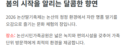 | 주요 테마 | 상큼한 딸기향에 실려오는 달콤한 만남 | 2026년 슬로건 기반 |