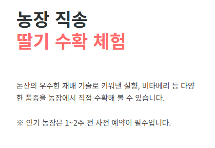 | 핵심 프로그램 | 딸기 수확 체험, 딸기 디저트 페스타, 헬기 탑승 체험 | 가족 단위 방문객 인기 |