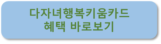 다자녀행복키움카드 신용카드와 체크카드로 분휴가되며 혜택으로는 교육, 출산, 건강, 서점, 문화, 외식, 미용, 쇼핑, 금융 등등 다양하게 혜택을 제공하오니 꼭 확인하시고 다자녀가족의 혜택을 받으시길 바랍니다.