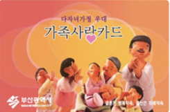 부산광역시에 거주하는 세 자녀 이상의 가정이 대상자입니다. 카드 종류는 역시나 다른 지역과 동일하게 신분확인용 카드와, 신용카드로 구분이 됩니다. 유효기간은 막내 자녀 만 18세까지 적요됩니다.