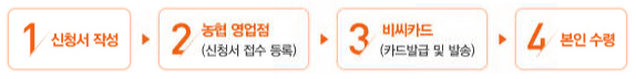 신청방법은 거주지에서 가까운 농협 본/지점에서 신청가능합니다. 카드는 본인이 직접 수령해야 하니 꼭 신분증을 지참하여 방문하시길 바랍니다.
