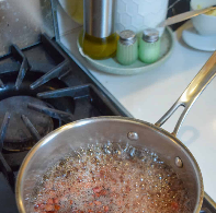 - 쌀이 거의 익었을 때 새알심을 넣습니다.