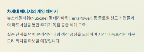 • 성장 동력: SMR 전용 공장 착공 및 미국향 가스터빈 수출 본격화.