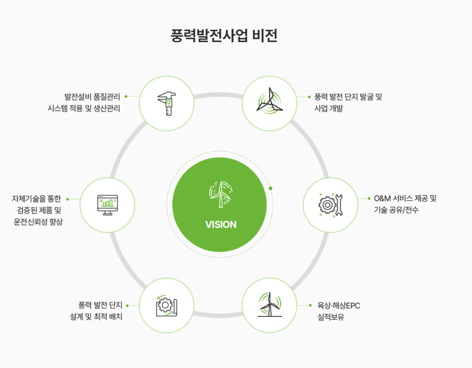• 해상풍력 발전 : 대형 터빈 제작 및 국내외 프로젝트 참여