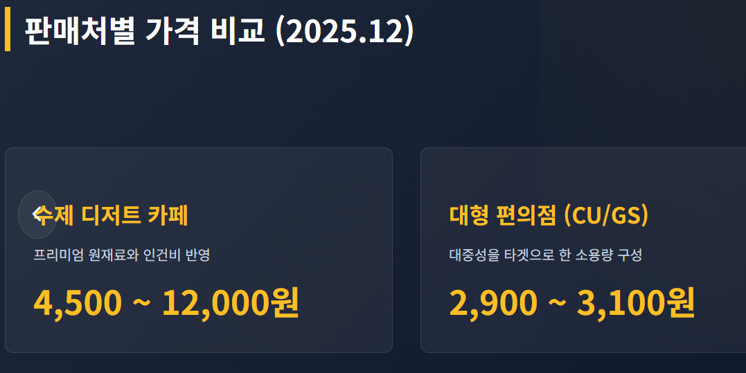 판매처별 두쫀쿠 가격 비교 (2025년 12월 기준)