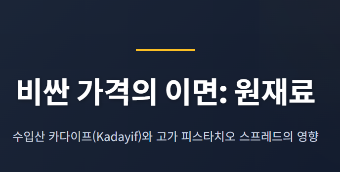 - 특이 사항: 주재료인 카다이프 공급 부족으로 당분간 고가격대 유지 전망