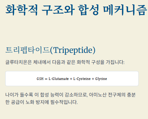 글루타치온은 글루탐산, 시스테인, 글리신이라는 세 가지 아미노산이 결합된 물질입니다.
