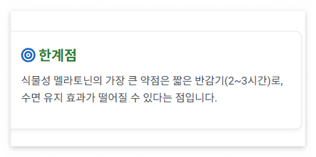 - 단기 사용 원칙: 식물성 멜라토닌은 수면 리듬을 재설정하거나 일시적인 입면 장애를 보조하는 목적으로 단기간 사용하는 것이 바람직하며, 장기 복용보다는 수면 환경 개선(예: 취침 전 블루라이트 차단)과 병행하여 보조적 수단으로 활용하는 것이 가장 효과적인 전략이다.5