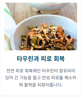 - 타우린: 멸치에는 아미노산의 일종인 타우린 성분도 있어 피로 회복과 간 기능 개선에 효과적입니다.