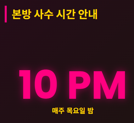 - 본방송 시간: 매주 목요일 밤 10:00 (TV CHOSUN)