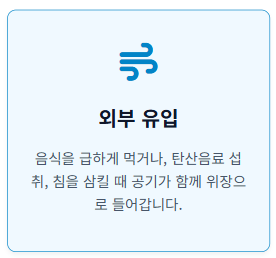- 외부 유입: 식사 중 음식을 빨리 먹거나, 탄산음료를 마시거나, 침을 삼킬 때 공기가 함께 위로 들어가게 됩니다.