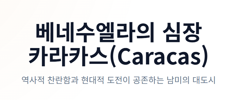 카라카스는 한때 중남미의 파리라고 불릴 만큼 아름다웠던 곳입니다. 비록 지금은 여러 경제적 어려움을 겪고 있지만, 그 지리적 이점과 문화적 자산은 여전히 매력적인 잠재력을 품고 있습니다. 혹시 카라카스의 구체적인 관광 명소나 베네수엘라의 현재 환율 정보가 궁금하시다면 추가로 말씀해 주세요. 상세히 안내해 드리겠습니다.
