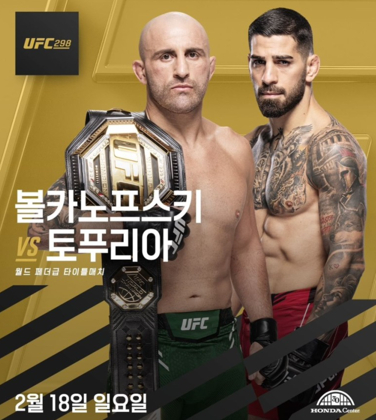 페더급에 떠오르는 황태자 일리아 토푸리아(27세)가 드디어 페더급황제인 볼카노프스키(35세)랑 경기를 치릅니다. 현재 6연승을 달리고 있는 토푸리아와 최근 마카체프의 패를 맛본 볼카노프스키와의 대결이 ufc298에서 볼수 있습니다. 경기일정과 분석을 알아봅시다.