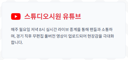 공식 웹사이트인 studioc1.co.kr을 통해서도 체계적으로 정리된 다시보기 서비스를 이용할 수 있습니다. 유튜브의 방대한 영상들 사이에서 특정 회차나 대진을 찾기 어려울 때 유용하며, 선수들의 비하인드 스토리나 팀 스토어 정보까지 한눈에 확인할 수 있다는 장점이 있습니다.