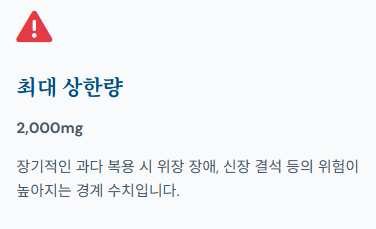- 하루 최대 상한량: 성인 기준 2,000mg입니다. 이 수치를 넘어서 장기적으로 과다 섭취할 경우 위장 장애나 설사, 신장 결석 등의 부작용이 나타날 확률이 높아지므로 주의가 필요합니다.