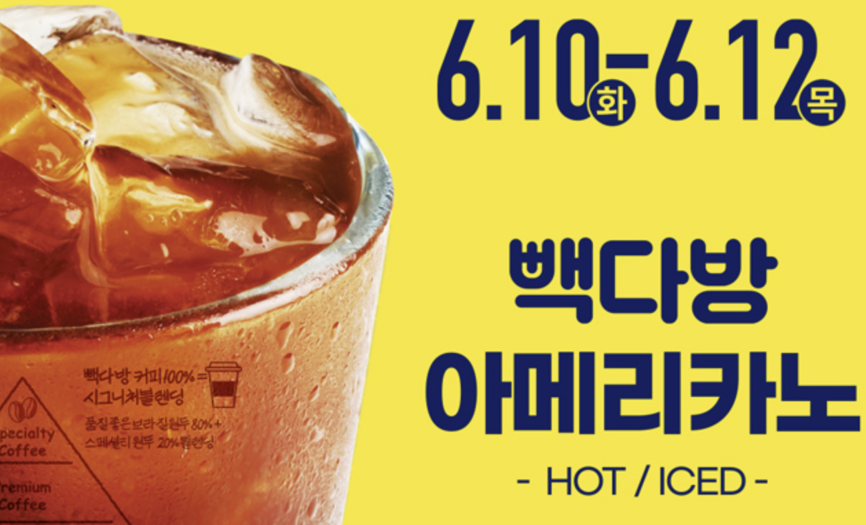 빽다방에서 6월 10일(화)부터 6월 12일(목)까지 단 3일간 아메리카노(HOT/ICED)를