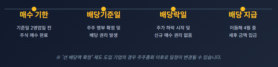 - 제도 변화: 최근 배당기준일을 3월로 늦추는 기업이 많아졌으니 개별 공시를 꼭 확인하세요.