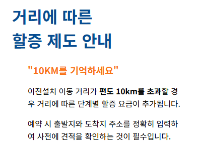 단순 위치 변경(재설치)인지, 아예 다른 집으로 옮기는 것(이전설치)인지에 따라 단가가 달라지므로 상담 시 이를 명확히 구분하여 문의하시기 바랍니다.