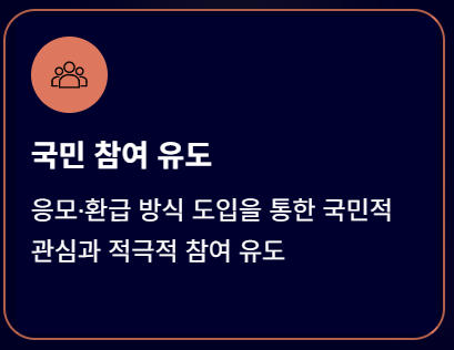 - 응모·환급 방식 도입을 통한 국민적 관심과 참여 유도