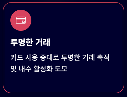 - 카드 사용 증대로 투명한 거래 축적 및 내수 활성화