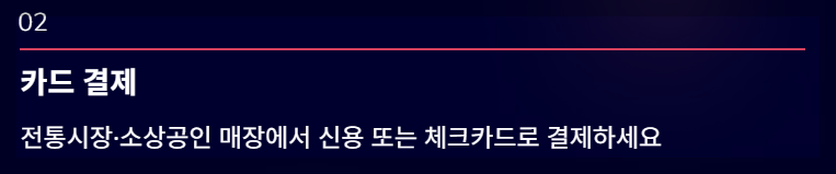 - 결제 실적 인정: 오프라인 전통시장, 음식점, 카페, 미용실, 동네마트 등이며, 온라인쇼핑몰·대형마트·백화점·유흥업종 등은 제외됩니다.