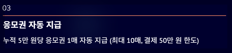 - 집계 기간 외 결제 실적은 응모권 산정에서 제외됩니다.