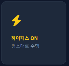 • 하이패스 차량: 단말기를 켠 상태로 하이패스 차로를 통과하세요. "통행료 0원이 정상 처리되었습니다"라는 안내 멘트가 나옵니다.